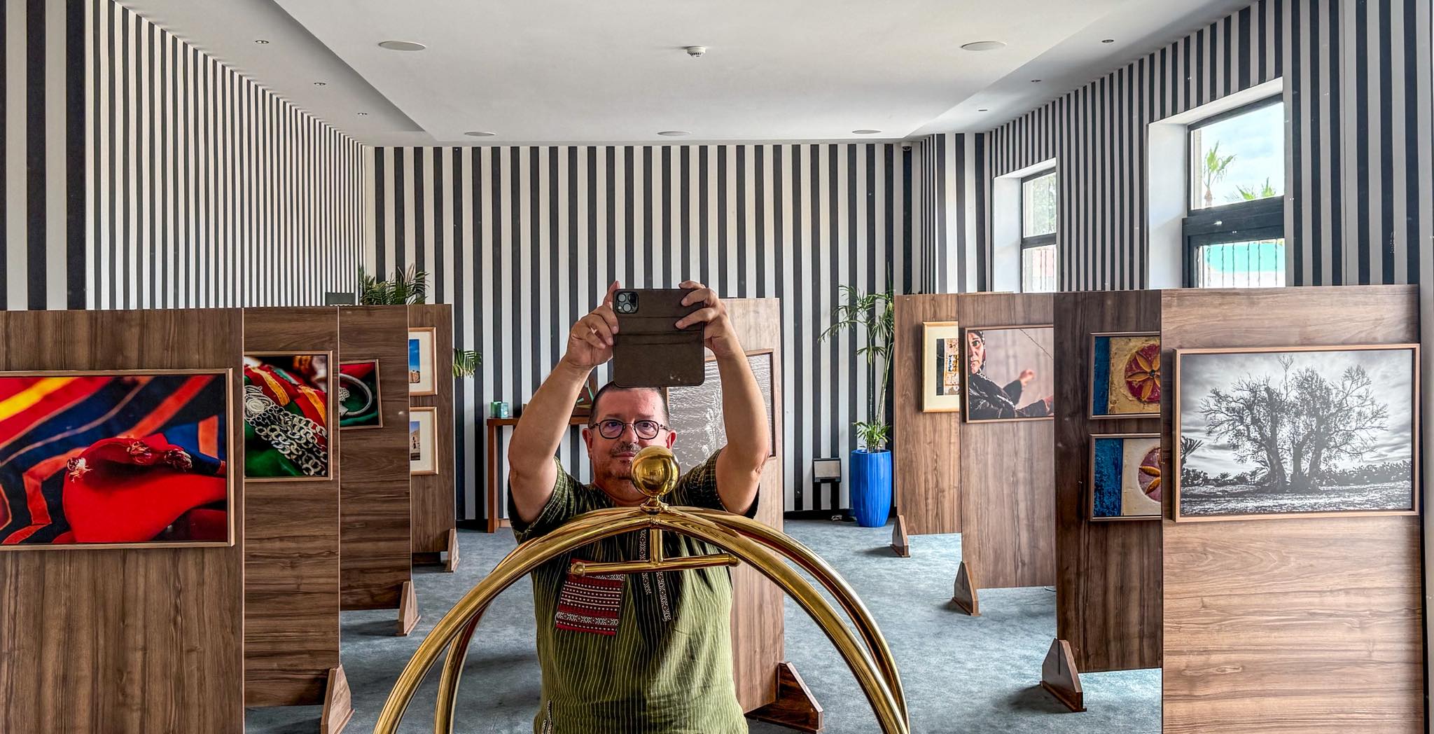 Son regard de photographe et d’humaniste s’est ensuite ouvert sur le monde. Il a invité des artistes internationaux à dialoguer autour d’expositions d’envergure : Demain au Palais de la Photographie, ou encore Vestiges et Traces à la Cathédrale de Sfax. Puis vint sa première exposition personnelle tunisienne, poétiquement intitulée Embarquement Sfax, véritable carnet de voyage visuel entre mer et mémoire.